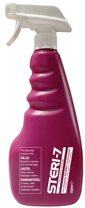 STERI-7 is a multi-purpose biocidal cleaner that also works as a high-level disinfectant. It cleans practically any surface and any material, eradicating bacteria, spores and viruses as it cleans. But what makes STERI-7 your ideal cleaning solution is that it also keeps treated areas contamination-free between cleaning cycles. This is because it goes on working once dried, something almost no other disinfectant is able to do. The result is round the clock safety, with no window of opportunity for germs to re-establish themselves.
